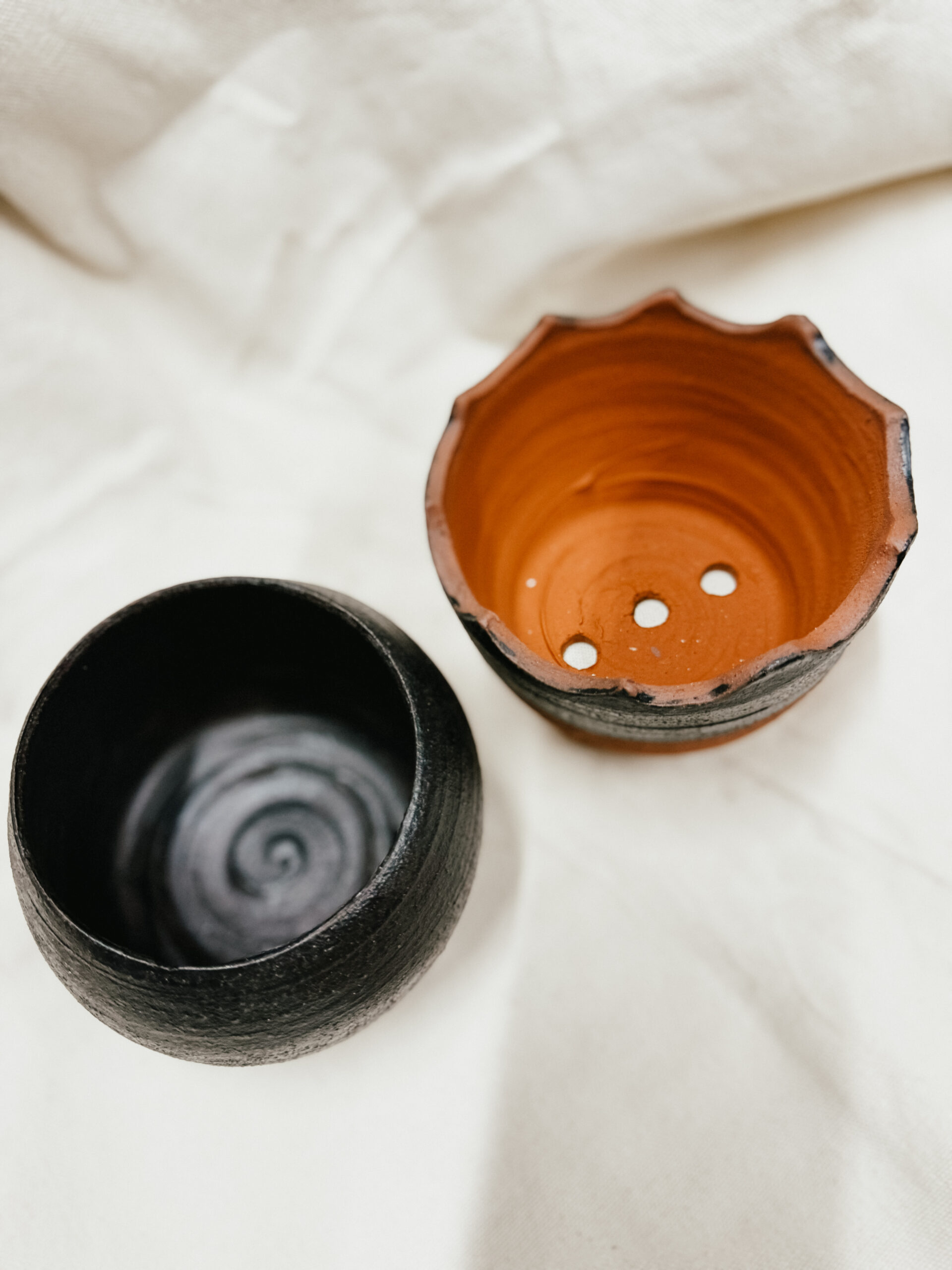 Hecho en torno mesa con acabado de engobes y esmaltes. Con arcilla roja de Santa Ana, Costa Rica.